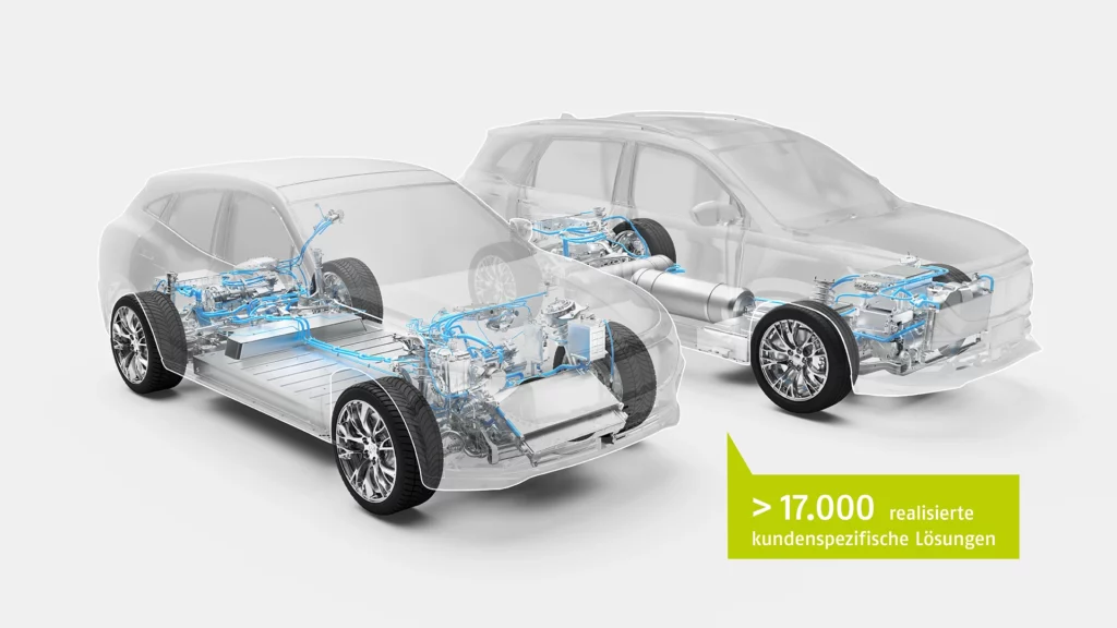 Für die folgenden drei Bauteilgruppen finden sich am Markt bereits bewährte Lösungen: für den E‑Antrieb ‚die Batterie und die Brennstoffzelle.