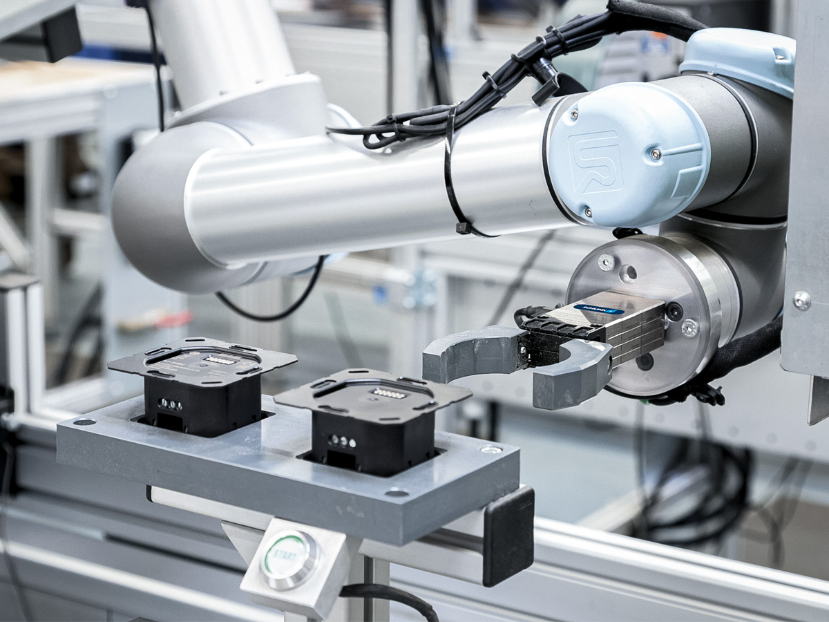 Beim Premiumanbieter für moderne Gebäudetechnik JUNG aus dem westfälischen Lünen übernimmt ein Cobot von Universal Robots die Beladung einer Laserbeschriftungszelle. Ausgestattet ist er mit einem Kleinteilegreifer von SCHUNK, der für einen hohen Durchsatz bei großer Präzision sorgt. Zusammen überzeugen sie als Paradebeispiel für den einfachen Einstieg in die Automatisierung.