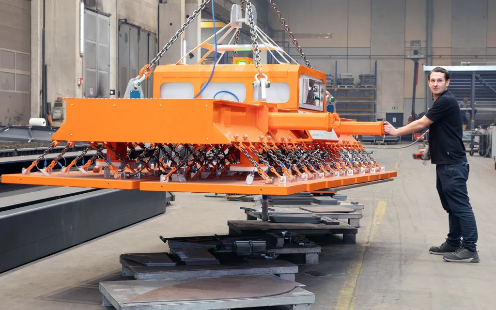 “With SCHUNK, we have a partner-like adviser at our side, especially when it comes to the magnetic clamping technology on our milling machine. High quality, always quick help, and absolute reliability – that’s how we see SCHUNK.” Based on this positive experience, the Rädlinger team involved SCHUNK in the new lifting technology project. “Because SCHUNK stands out due to its magnetic clamping technology,” emphasizes Grassl. This led to the decision in favor of the TRETEL electropermanent magnetic module cross beam for handling metal sheets between the flame-cutting machine and the sheet storage system. Commissioning took place at the beginning of January 2025. “After a week of familiarization, it was clear that we had done the right thing,” says the project manager. “We have made significant gains in terms of safety, ergonomics, and process efficiency thanks to the surface magnet, while at the same time the process paths, set-up times, and space requirements have been noticeably reduced.”